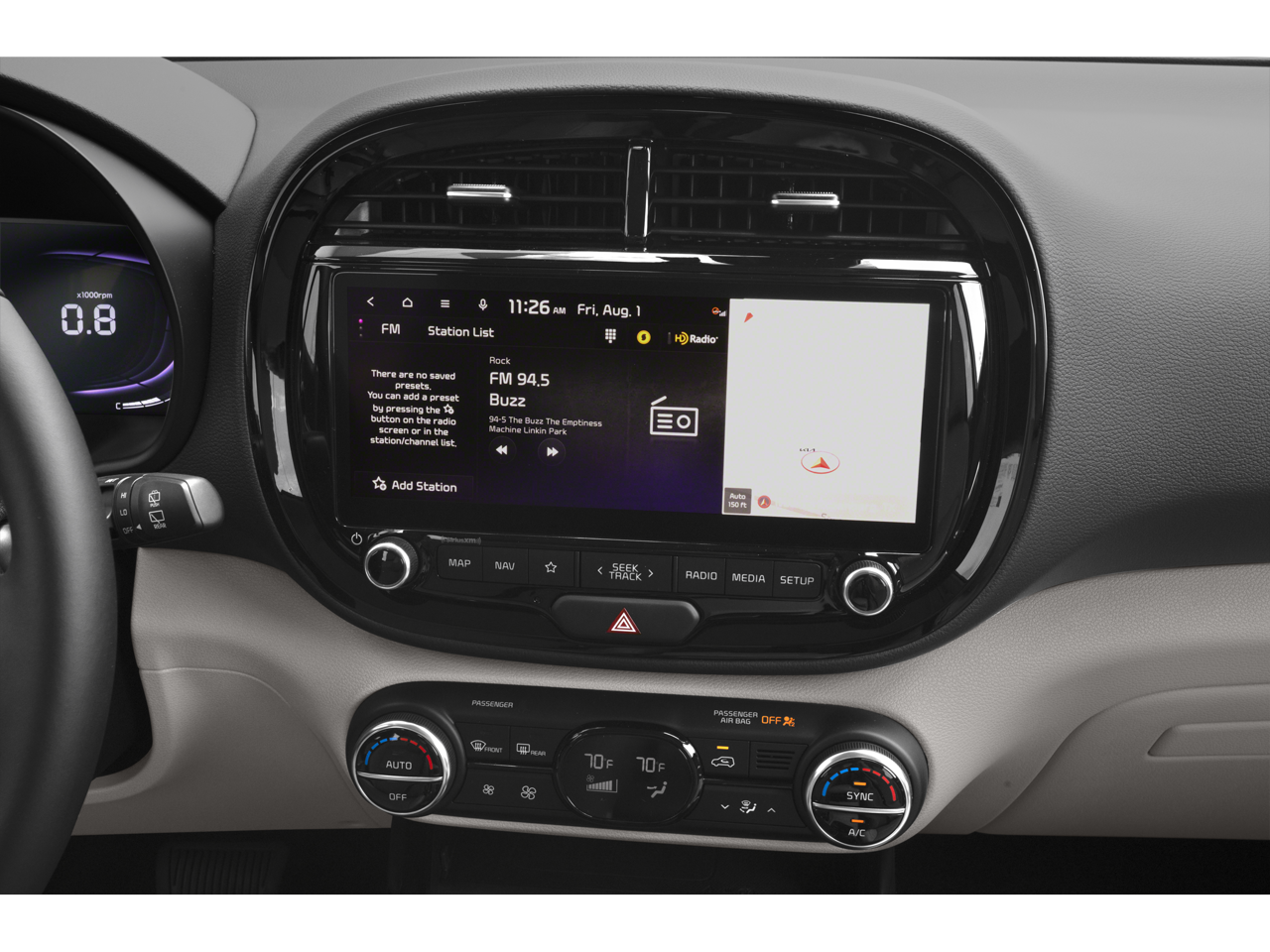 - Radio: AM/FM/MP3/HD Audio System -inc: UVO link, navigation, SiriusXM, 10.25" color touch screen, 6 speakers, Android Auto/Apple CarPlay, USB input, audio remote control, Bluetooth® wireless technology w/voice recognition and wireless charging