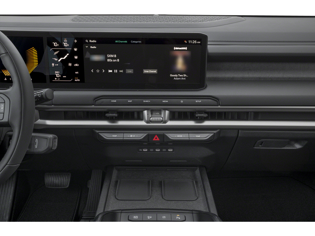 - Radio: AM/FM Display Audio System -inc: 12.3" center infotainment w/navigation, wireless Apple CarPlay and Android Auto, SiriusXM, Bluetooth® w/voice recognition, 8 SoundHound speakers, passenger talk, Wi-Fi hotspot, Kia Connect, Over-the-Air update capability and 1 data USB-C port in front row