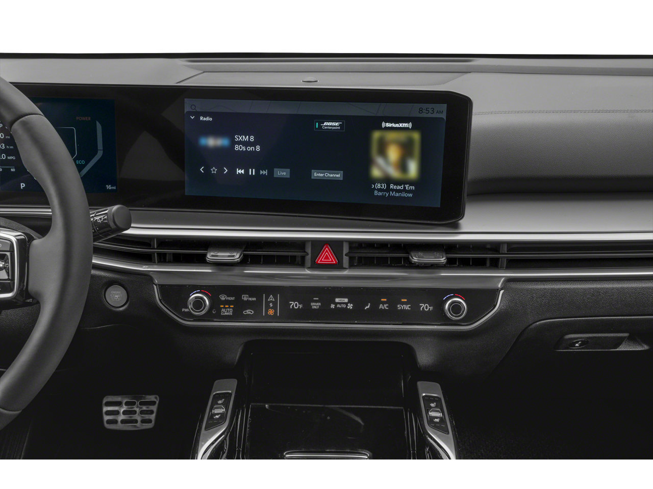 - Radio: AM/FM/SiriusXM Audio System -inc: 12.3" ccNc touchscreen, HD Radio, modem, navigation, over-the-air updates, Kia Connect, Wi-Fi hot spot, Bose premium audio w/12 speakers including tweeters and subwoofer, amplifier, Bluetooth®, voice recognition, wireless Apple CarPlay, wireless Android Auto and USB connectivity